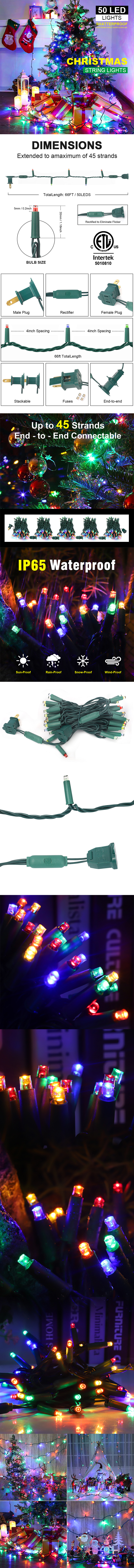 Outdoor 5m 50-bead green wire multicolor 5mm LED Christmas light string, used for Christmas decoration